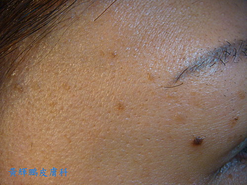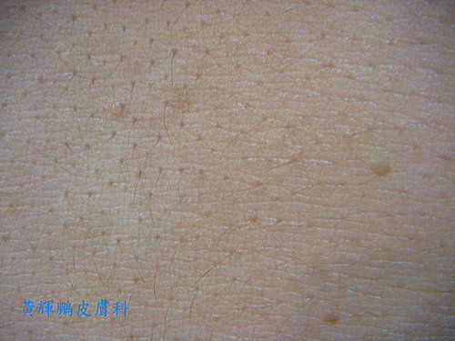 ※伴隨臉、頸、胸、腹部平頂微凸之角化丘疹之患者,臉部病灶不論大小,以及頸胸腹部比米粒大的病灶一率施予汽化雷射治療,頸胸腹部小於米粒的病灶,用高週波電燒儀相同模式治療。