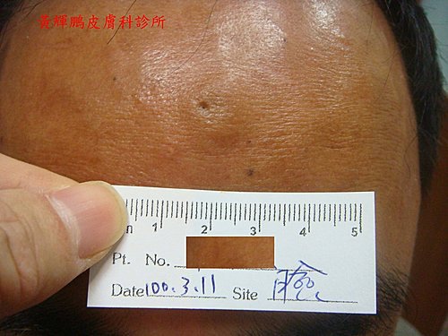 圖一、粉瘤長於皮膚真皮內,隆起於皮膚表面 圖二、典型的毛囊囊腫頂端可見一黑色小孔